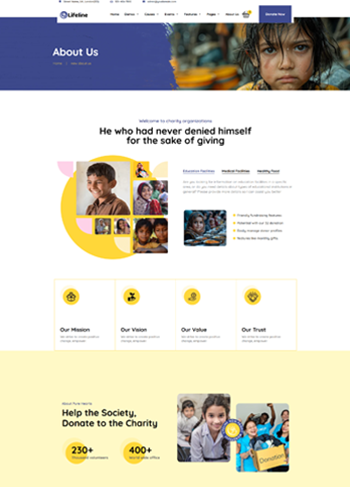 To build trust and credibility Lifeline theme has got dedicated sections to provide real-life examples of how donations and support are making a difference in real life.